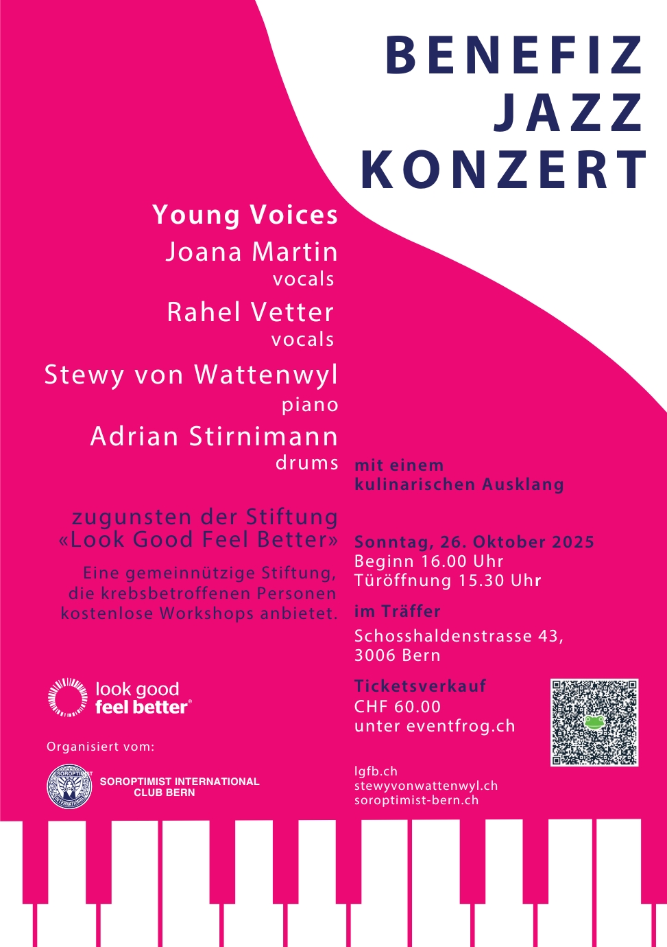 Wir laden Sie herzlich zu unserem besonderen Benefiz-Jazz-Konzert ein! Gemeinsam möchten wir einen Beitrag leisten und krebsbetroffenen Menschen Mut, Selbstvertrauen und Hoffnung schenken.