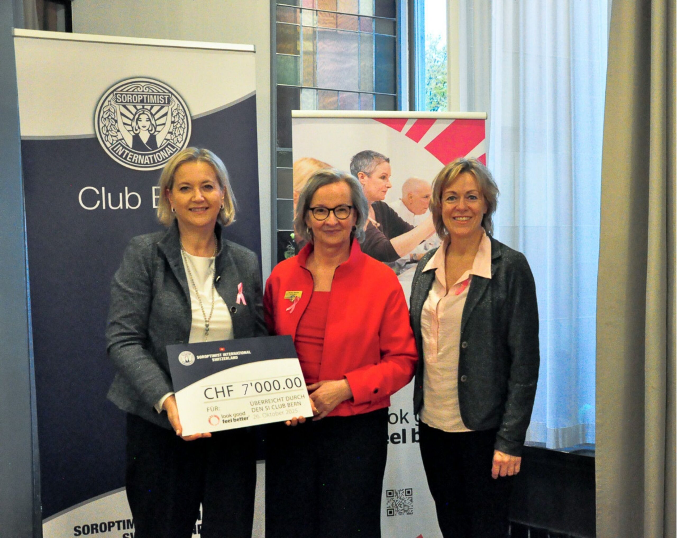 Im Anschluss an das Konzert folgte mit der Scheckübergabe ein weiterer Höhepunkt: Nach einer kurzen Vorstellung der gemeinnützigen Stiftung «Look Good Feel Better», welche krebsbetroffenen Menschen kostenlose Workshops anbietet, konnte der Stiftung ein Scheck über 7’000 Franken überreicht werden – ein gemeinsamer Beitrag, um die wertvolle Arbeit zu unterstützen und Betroffenen mehr Selbstvertrauen und Lebensfreude zu schenken.