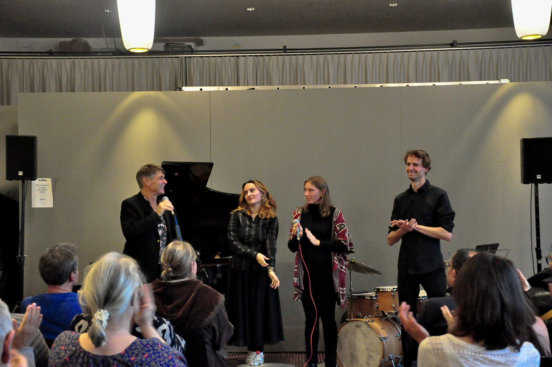 Die Verbindung des routinierten Jazz Pianisten Stewy von Wattenwyl mit den Stimmen der jungen Sängerinnen, gefühlvoll begleitet von Adrian Stirnimann am Schlagzeug, sorgte für ein lebendiges Wechselspiel von Virtuosität und jugendlichem Ausdruck und verlieh dem Anlass eine gewisse Leichtigkeit. Das Konzert endete mit Standing Ovations, das Publikum dankte den Musiker:innen für ihre grossartige Leistung.